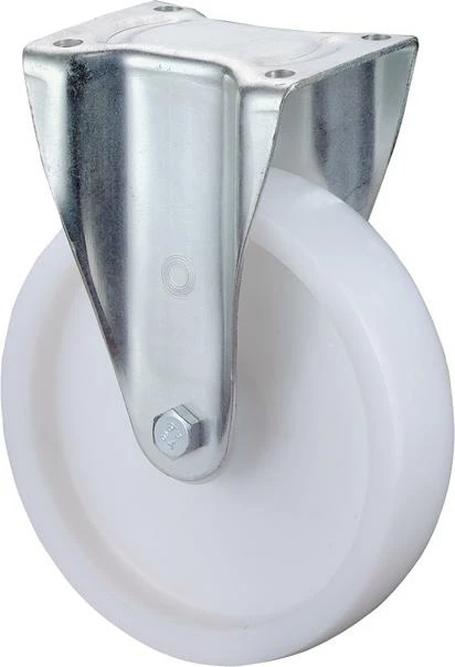 Gabel aus Stahlblech, verzinkt-chromatiert, zweireihiger Kugelkranz im Gabelkopf, schwere Ausführung.