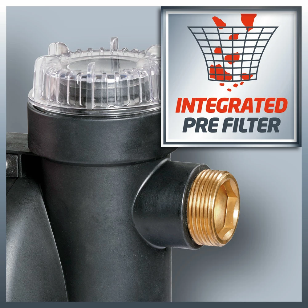 Der Hauswasserautomat GC-AW 6333 ist ein leistungsfähiges und zuverlässiges Gerät für die bedarfsgerechte, energiesparende Förderung von Klarwasser aus Reservoirs, Brunnen und Schächten zu Bewässerungszwecken oder zur Brauchwasserversorgung. Sein elektronischer Durchflussschalter mit LED-Anzeige und Automatikfunktion schaltet die Pumpe für die Wasserentnahme automatisch ein und wieder aus. Mit seinem starken 630 Watt Motor fördert der Automat stündlich bis zu 3.300 Liter Wasser aus maximal 8m Tiefe. Dies geschieht mit bis zu 3,6 bar Förderdruck was gleichbedeutend mit einer maximalen Förderhöhe von 36 Meter ist. Der Hauswasserautomat verfügt über einen Vorfilter mit integriertem Rückschlagventil, der die Wasserqualität verbessert und somit eine Verunreinigung der Pumpe verhindert. Außerdem verfügt das Gerät über einen integrierten, elektronischen Trockenlaufschutz, der es vor dem Überhitzen bei einem Abriss der zu pumpenden Wassersäule aktiv schützt.