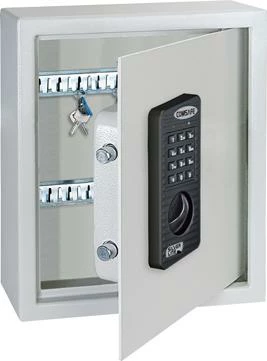 Einwandiger Schlüsselschrank aus hochwertigem Stahl, Korpus 2 mm, Türblatt 4 mm, mit Feuerfalz und stabilen Scharnieren. 4 Bohrungen in der Rückwand serienmäßig. Im Lieferumfang ist das Befestigungsmaterial enthalten.