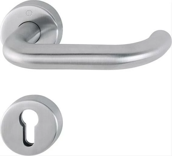 HOPPE-Edelstahl-Feuerschutz-Rosetten-Garnitur: geprüft nach DIN 18273 und DIN EN 1906, Türgriff für HOPPE-Steckgriff-Verbindung mit Kugel-Arretierung Sertos®, Schilder mit Stahl-Unterkonstruktion und Stütznocken, wartungsfreies Gleitlager für Türgriffe, verdeckte, lockerungssichere Verschraubung mit durchgehenden Gewindeschrauben.