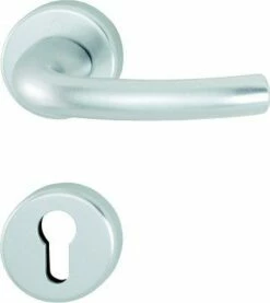 HOPPE-Aluminium-Innentür-Rosetten-Garnitur (Türgriff-Garnitur): geprüft nach DIN EN 1906 (Benutzungs-Kategorie 3), Türgriffe mit HOPPE-Schnellstift-Verbindung (mit HOPPE-Vollstift), Rosetten mit Kunststoff-Unterkonstruktion, Rückholfeder und Stütznocken, verdeckte, durchgehende Verschraubung mit selbstschneidenden Gewindeschrauben.