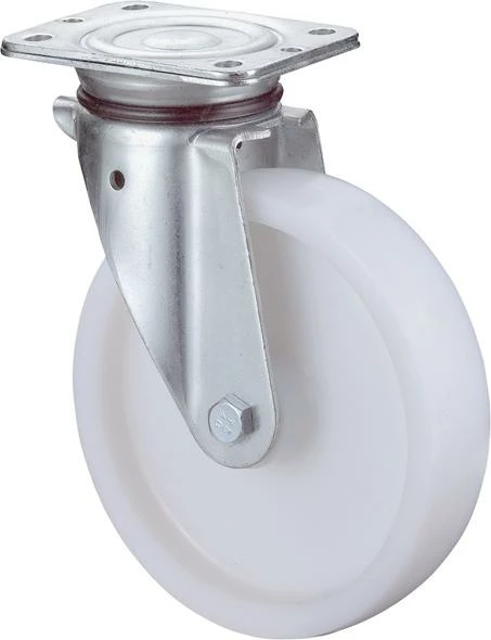 Gabel aus Stahlblech, verzinkt-chromatiert, zweireihiger Kugelkranz im Gabelkopf, schwere Ausführung.