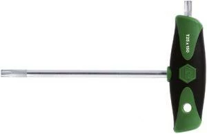 Aus Chrom-Vanadium-Stahl, durchgehend gehärtet und mattverchromt. Der Schraubendreher verfügt über eine durchgehende Klinge mit Seitenabtrieb zur Übertragung hoher Drehmomente. Mit ergonomischem Mehrkomponenten-Quergriff, Weichzonen und Aufhängeloch.