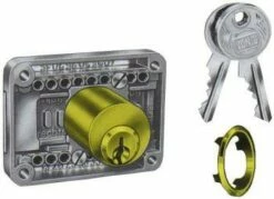 Aufliegend, mit Zylinder, Kasten Metall vernickelt, 2 Schlüssel, 1 Rosette, einstellbar von 15-40 mm bis Mitte