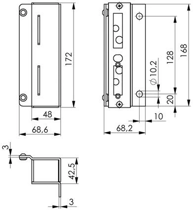 Schließkasten für Dübelbefestigung, mit verzinktem Schließblech, rechts und links verwendbar. Für elektrischen Türöffner vorgerichtet.