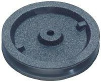 Aus Grauguss, mit schmaler, runder Rille. Rille gedreht, Nabenloch gebohrt.