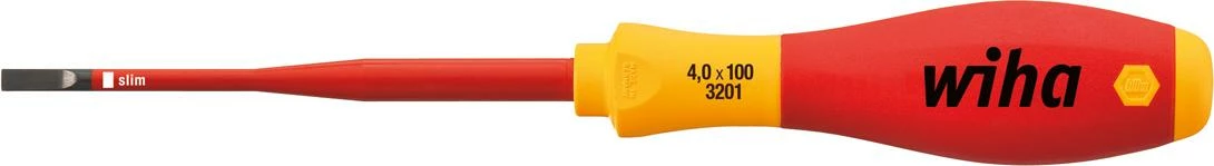 Schutzisoliert nach DIN 60900, VDE 0682 Teil 201 bis 1.000 Volt, Schneide nach DIN 5264, Klinge aus hochlegiertem Chrom-Vanadium-Molybdän-Stahl, durchgehend gehärtet und brüniert. Ergonomischer SoftFinish®-Mehrkomponentengriff mit Abrollschutz. Dank der integrierten Schutzisolation können auch tiefliegende Schrauben erreicht werden.