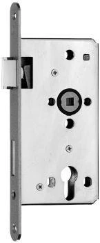 Nach DIN 18251, 2-tourig, Entfernung: 72 mm, Nuß: 8 mm, mit Wechsel, ohne Schließlech, Stulp 20 mm, Klemmnuss: Stahl verzinkt, Lagerschalen aus Stahl, Nachschmiereinrichtung. Falle und Riegel vernickelt. Fallenanschlag mit Geräuschdämpfung. Mit Nirosta-Stulp. PZ
