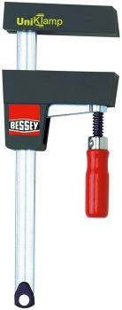 Zum Spannen und Spreizen. Schalen aus glasfaserverstärktem Polyamid, bruchfest, leimabweisend, beständig gegen Lacke und Fett-Lösemittel. Große, plane Spannflächen ermöglichen ein schonendes und paralleles Spannen empfindlicher Oberflächen, rechter Winkel, runder und spitzer Werkstücke. Die UniKlamp spannt auch hinter und seitlich der Schiene. Dadurch werden Spannstellen zugänglich, die mit üblichen Schraubzwingen nicht erreicht werden können. Werkzeugloser Umbau zum Spreizen.