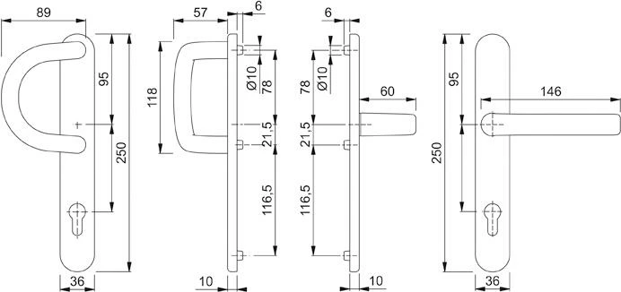 HOPPE-Aluminium-Profiltür-Langschild-Garnitur: Türgriffe fest/drehbar gelagert mit Rückholfeder,