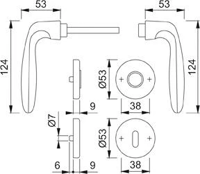 HOPPE-Aluminium-Innentür-Rosetten-Garnitur (Türgriff-Garnitur): geprüft nach DIN EN 1906 (Benutzungs-Kategorie 3), Türgriffe mit HOPPE-Schnellstift-Verbindung (mit HOPPE-Vollstift), Rosetten mit Kunststoff-Unterkonstruktion, Rückholfeder und Stütznocken, verdeckte, durchgehende Verschraubung mit selbstschneidenden Gewindeschrauben.
